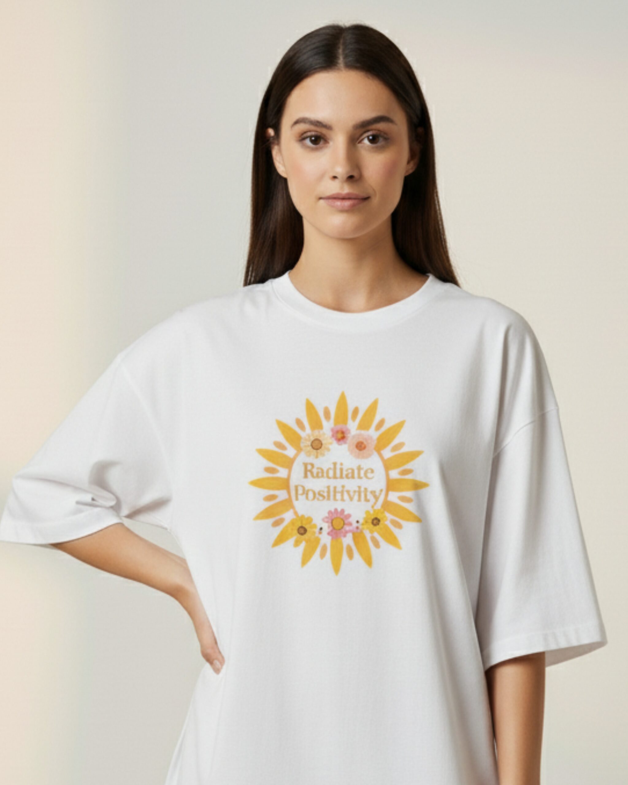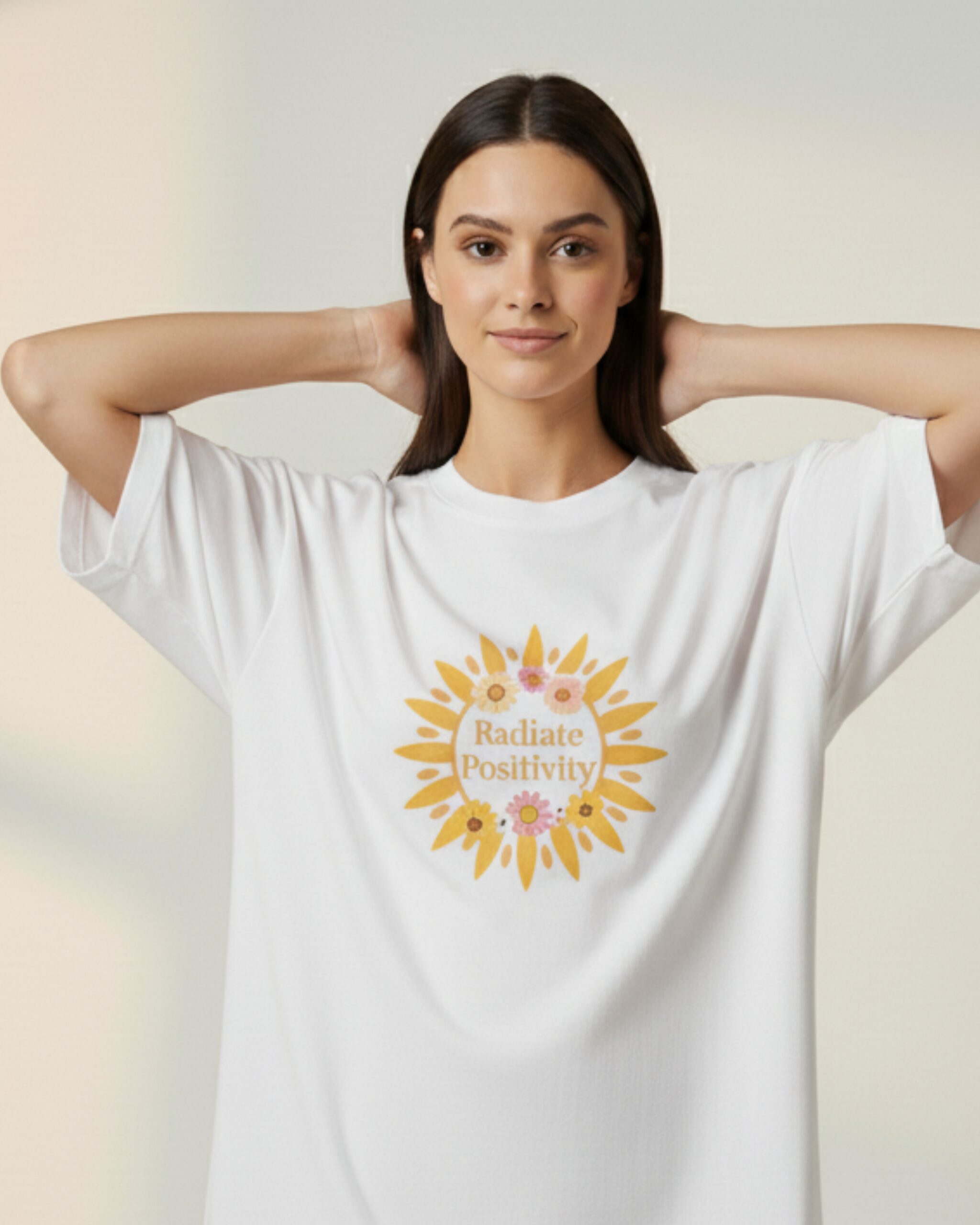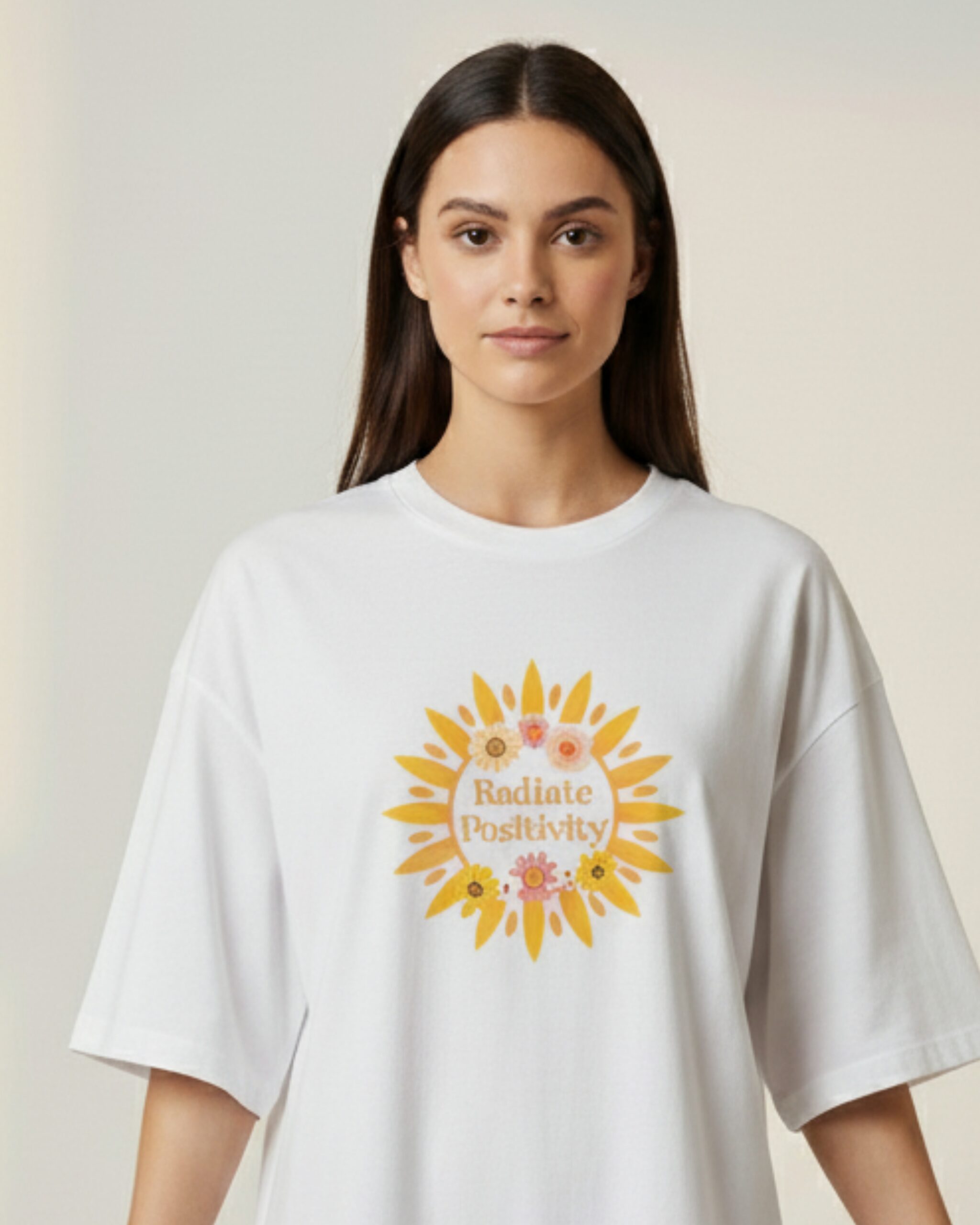 Perfect for women who love to express their individuality, the “Radiate Positivity” t-shirt blends style and comfort effortlessly. Whether you’re a lover of nature, an advocate for kindness, or someone who believes in the power of a good vibe, this t-shirt is for you.
