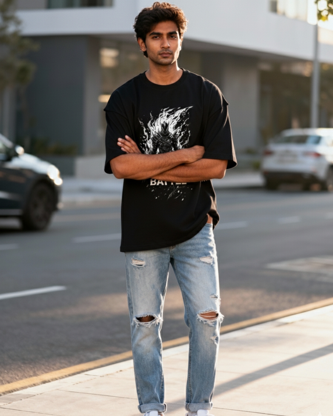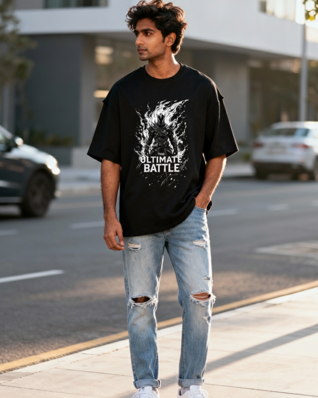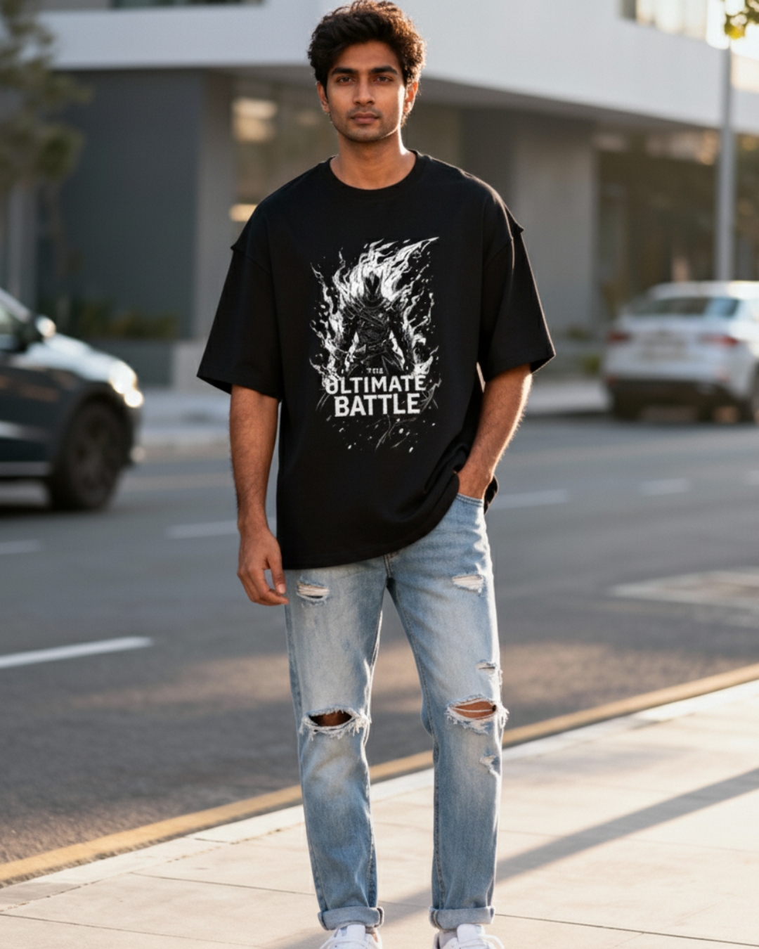 The “ULTIMATE BATTLE” t-shirt is a blend of modern design and anime-inspired artistry.