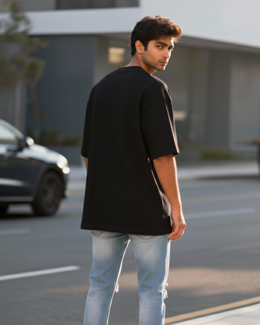 Inspired by modern abstract design and redefined through Indian craftsmanship. This premium black t-shirt is crafted from 100% high-grade French Terry cotton, offering exceptional softness, breathability, and comfort. Its clean, fluid lines and bold graphic accents reflect contemporary design principles, while the natural fabric and durable construction ensure long-lasting performance.